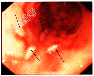 - 简答题2、患者辅助检查结果提示:血常规:WBC 4.66×10⁹/L,Hb 128g/L,PLT 207×10⁹/L;大便常规:黑灰色便,常规正常,潜血阴性;电子胃镜,见下图:胃窦多发溃疡。腹部B超:肝囊肿。进一步的明确诊断最主要依靠