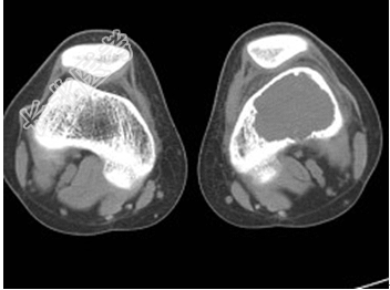 - [材料题] 患者,男,33岁,左股骨肿块半年余,无明显症状,查体一般情况良好。