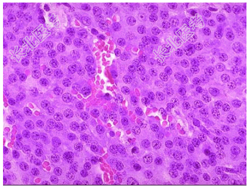 - [材料题] 患者女性,32岁,停经、泌乳,泌乳素升高为主要临床表现就诊,入院后MRI示垂体腺形态异常。手术探查见蝶鞍区一境界清楚肿物,直径大约2cm,切除送检镜下如图,临床诊断为垂体腺瘤。