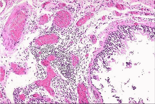 - 简答题1、纤支镜取活检镜下如图所示,该患者正确的诊断是?