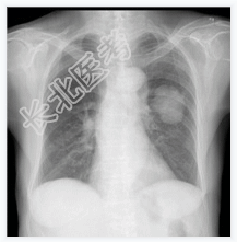 - [材料题] 患者,女性,83岁,低热一个多月,伴乏力、纳差、咳嗽,曾咯血丝痰。查体:体温,37.8℃;双肺呼吸音粗,未闻及明确干湿性啰音。心脏体查无异常。行胸部平片检查。