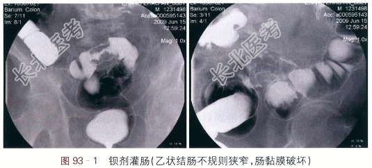 - [材料题] 患者一月便血3次。体格检查:下腹触及肿块,轻压痛。影像学资料如图93-1~图93-2所示。