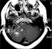 - [材料题] 患者女,41岁。头痛半年,加重10d。头部MRI显示如下图。