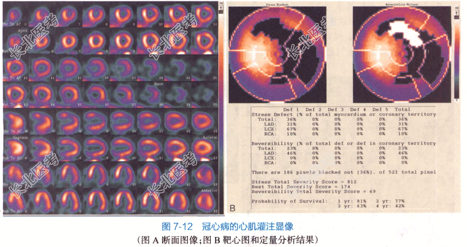 - [材料题] 患者,男,65岁。近感胸部不适,活动后明显加重。运动平板试验阳性。高血压病史5年,糖尿病病史2年。为了解心肌有无缺血行心肌灌注显像图像。