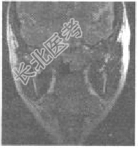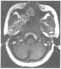 - [材料题] 患者,男性,53岁,发现鼻塞及左侧颈部包块、面部疼痛1个月余,查体左颈部有一质硬包块。MRI如下图所示: