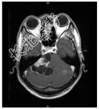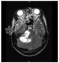 - [材料题] 患者男,37岁,右耳听力丧失数月。查体:右耳听力丧失,视力正常,余神经体征阴性。行头颅MR平扫及增强检查。