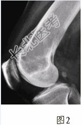 - 简答题1、根据膝关节CR和CT影像,你认为此病例的影像学表现有?