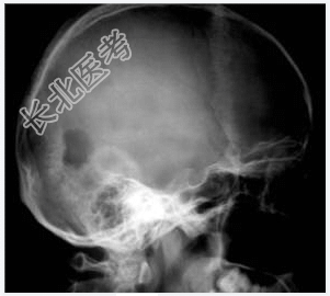 现病史:三月前发现左枕部软组织轻微突起伴隐痛,到当地医院检查发现左枕部颅骨骨质缺损,未作具体治疗,现觉头皮肿物增大,时伴有气促、头痛。