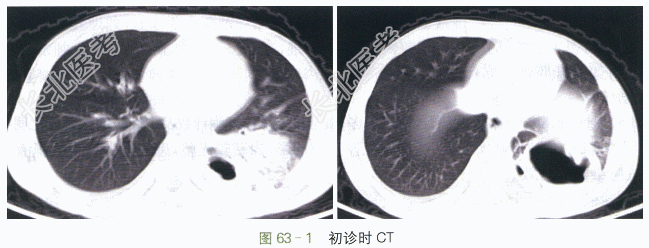 (1)症状:发热15天,前7天38~38.5℃,近8天来热升,最高时40.4℃,阵发咳嗽,痰多而臭,有胸痛。