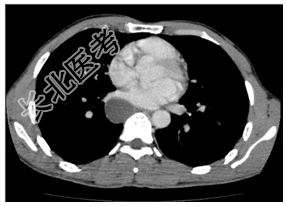 - [材料题] 患者,男性,31岁。阵发性胸痛多年,近来明显。查体:双肺呼吸音清,未闻及干湿性啰音。腹平软,肝脾未扪及。行胸部CT平扫及增强检查。
