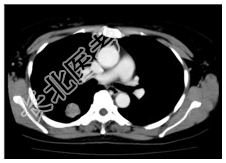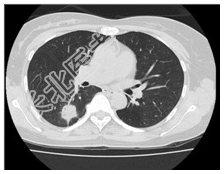 - [材料题] 患者,女性,47岁,体检发现右肺结节。查体:双肺呼吸音清,未闻及干湿性啰音。心脏体查无异常。行胸部CT平扫及增强。
