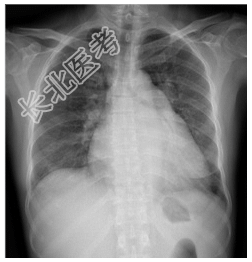 - [材料题] 患者,女性,48岁,劳累后心悸、气促2年余,加重伴呼吸困难1周。查体:患者颧部潮红,心尖区可闻及舒张期隆隆样杂音,第二心音亢进、分裂,双肺可闻及细湿啰音。心界向两侧扩大。行胸部平片检查。