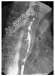 - [材料题] 病历摘要:男,70岁。因剑突下疼痛伴吞咽异物感2月来诊。查体:无特殊。给予食道吞钡检查。