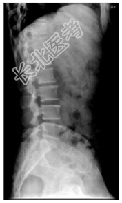 - [材料题] 患者,女性,50岁。腰痛1个月。查体:心、肺(-),腹平软,无压痛,腰部叩击痛。行腰椎正侧位检查。