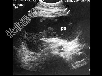 - [材料题] 女性患者,56岁,急性胰腺炎1周。B超图像如图。