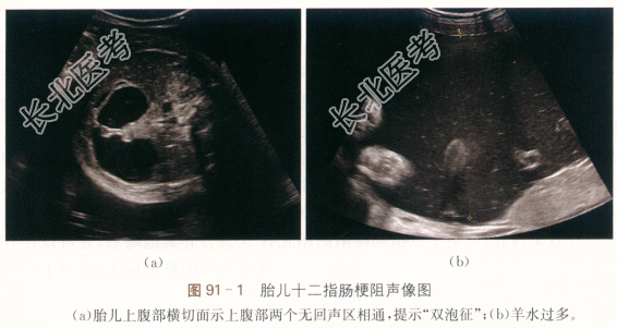 - 简答题1、若诊断为胎儿十二指肠梗阻,其声像图表现是什么?