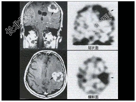 - [材料题] 男性患者恶性脑肿瘤术后6年复查,有放疗病史,无明显症状,行MRI及⁹⁹Tcᵐ-ECD脑血流灌注显像,后者提示局部脑血流减低,行Tl脑显像如图: