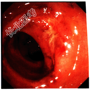 - 简答题3、患者上消化道内镜检查发现十二指肠降部及以远黏膜充血、水肿、溃疡形成及黏膜下出血,病变呈节段性分布,十二指降部影像见下图。肠镜结肠内及回肠末端可见血迹,水冲后未见异常。腹部CT提示空肠及部分回肠节段性水肿、扩张。血常规提示:WBC30×10⁹/L,Hb110g/L。便常规为红细胞(RBC)满视野,白细胞>50/HP,追问便培养结果已见革兰阳性杆菌生长。最可能的诊断是