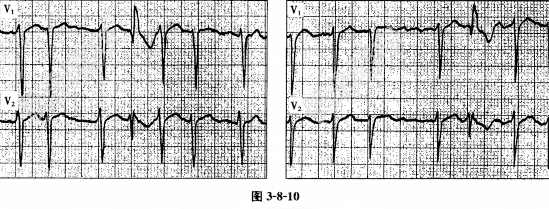 - [材料题] 患者女性,57岁,高血压史10余年,心房颤动3年。心电图检查见图3-8-10,