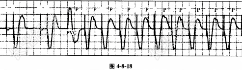 - [材料题] 患者男性,70岁,因病态窦房结综合征植入DDD起搏器。现因心慌就诊,心电图如图4--8-18所示。