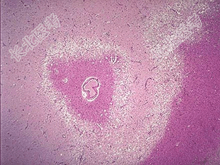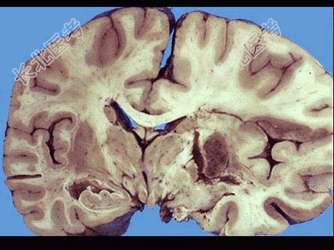 - 单项选择题图为脑梗死的肉眼及镜下观,叙述不正确的是 ( )