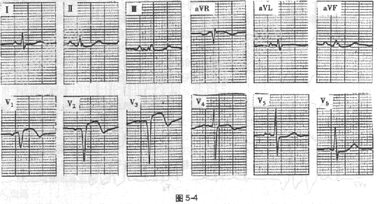- 单项选择题患者男性,42岁, 高脂血症,因突发胸痛不能缓解入院诊治。心电图如图5-4所示, 应诊断为