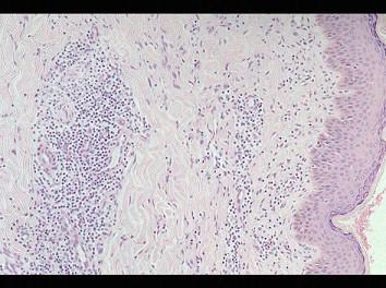 D、早期可见组织充血,密集的表皮淋巴细胞浸润