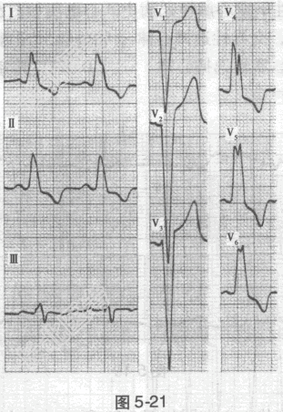 - 单项选择题患者男性,28岁, 主动脉狭窄。心电图如图5-21所示,应该诊断为