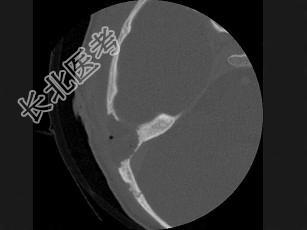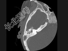 - 单项选择题女性,17岁, 右耳乳突区隐痛,右耳后乳突区出现包块, 逐渐增大,CT检查如图所示, 请选择最可能的 ( )