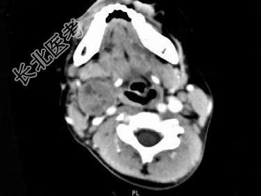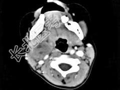 - 单项选择题女,4岁, 右侧颈部可扪及一包块约两个月,无热无痛, CT如图所示,最可能的诊断为 ( )