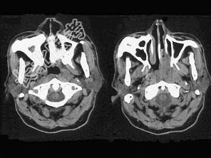 - 单项选择题男,64岁, 间断性流鼻血一年余,近1个月加重, CT如图所示,最可能的诊断为 ( )