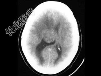 - 男,65岁, 右侧肢体力弱,CT示左额顶