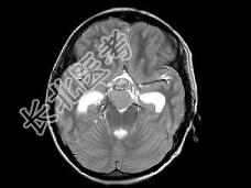 - CT显示跨越颅中后窝哑铃状肿块,岩骨尖部