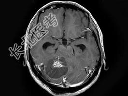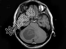 单项选择题男,33岁, 阵发性头痛伴呕吐行走不稳1个月,MRI平扫及增强扫描如图, 最可能的诊断是 ( )