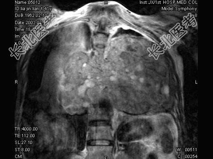 - 不属于NF-Ⅰ型神经纤维瘤CT表现的是