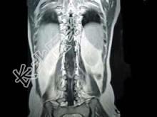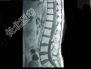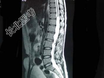 - 单项选择题男,43岁, 背部疼痛,双下肢瘫痪, 查体:下腹部以下深浅感觉障碍, 提睾反射消失,结合图像, 最可能的诊断是 ( )