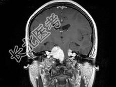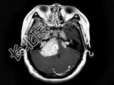 - 单项选择题女,22岁, 胸背部及头皮下多发红色丘疹状突起,伴头痛, 听力下降半年,行头颅MRI平扫及增强扫描如图, 最可能的诊断为 ( )