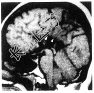 - [材料题] 患者,女性,41岁。智力低下,MRI结果如下图所示。