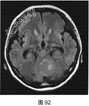 - [材料题] 患者女性,51岁,因“头晕、恶心进行性加重1个月余,伴呕吐5小时”就诊。患者于1个月前出现头晕症状,伴恶心,无视物旋转、头痛、走路不稳,无言语改变、意识障碍。患者症状反复发作并进行性加重,2周前间断出现走路不稳,似醉酒样步态,倒向左侧;5小时前出现头晕、恶心,并呕吐胃内容物,站立不稳。既往有高血压病史3年,血压控制尚可。查体:轮椅推入病房,可见步态不稳,神志清楚,应答正确,无吟诗样及爆炸样言语,遵嘱活动,双侧瞳孔等大正圆,对光反射灵敏,四肢活动可,肌力、肌张力未及异常,指鼻试验、双侧轮替试验阴性,双侧跟膝胫试验欠稳准,双侧膝反射及跟腱反射正常,双侧病理征未引出,闭目难立征不能配合。实验室检查:外周血白细胞计数15.29×109/L,中性粒细胞百分比92.1%,二氧化碳18.8mmol/L,血糖7.05mmol/L;心肌酶、凝血试验正常。