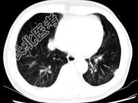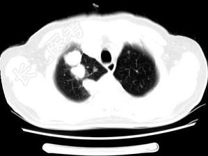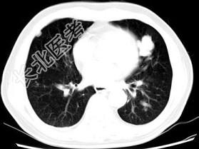 - 某前列腺癌患者治疗后复查胸部CT如下图所