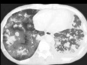 - 单项选择题女,26岁, 全身不适,发热, 咳嗽,咯血, 有吸毒史,结合CT图像, 最可能的诊断是 ( )