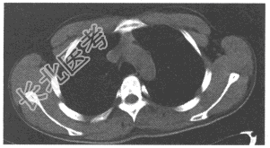- 单项选择题女,43岁, 两眼不能完全睁开,全身无力两年余。胸部CT扫描前纵隔内发现肿块, 如图,最可能的诊断是