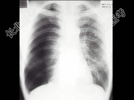 - 单项选择题患者突发胸痛气急,呼吸困难, 胸片如图,最可能的诊断为 ( )