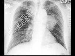 - 单项选择题男,57岁, 胸痛数月,近2天痰中带血, X线检查如图,最可能的诊断是 ( )