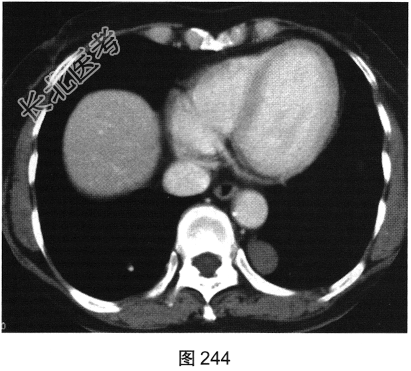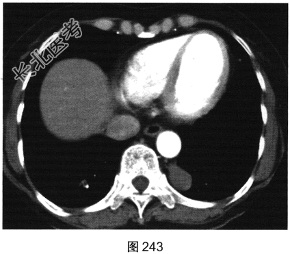 - 多项选择题3.[提示]患者增强CT如图243、图244所示。下述哪些征象的描述是正确的( )