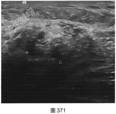 - 多项选择题2.[提示]患者行X线及超声检查,如图369~图372所示。X线及超声的影像学表现是( )