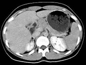 - 男,45岁,无明显外伤史,腹部CT如图所