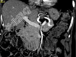 - 胆总管重度扩张并且在胰头下方突然截断消失