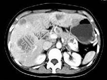 - 横断面CT扫描,正常成人肝脏上下径为