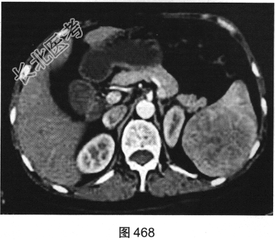 - 多项选择题2.[提示]患者行CT动态增强扫描,如图467~图469所示。对CT图像描述正确的是( )